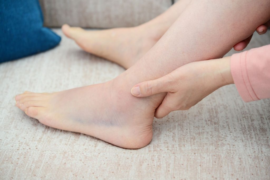 重度の場合は、靭帯が完全に断裂していることもあり、強い痛み・著しい腫れ・皮下出血が見られます。関節が不安定になり、体重をかけることができなかったり、物を掴む・持つといった動作が困難になります。