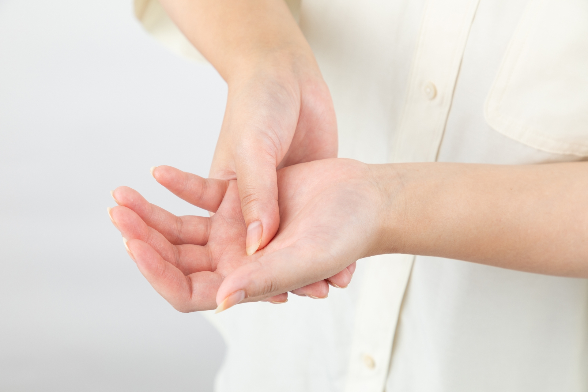 症状が進行すると、手の付け根を押しても強い痛みを感じにくくなるケースもあり、気づかないうちに悪化してしまうこともあります。